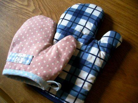 最近、料理を手伝いたがる娘は、鍋つかみをやたらと使いたがります