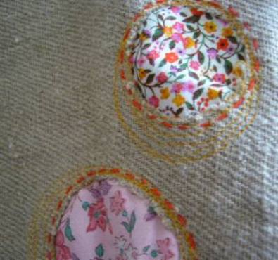 生地をくり抜いて、裏からコットンをあて、ミシンでぐるぐる縫い