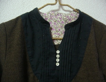 見返しと袖口裏側にリバティー風お花柄のコットン生地を使用しました