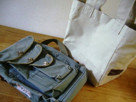 一番上の画像の左のカバンは、帆布カバンの老舗